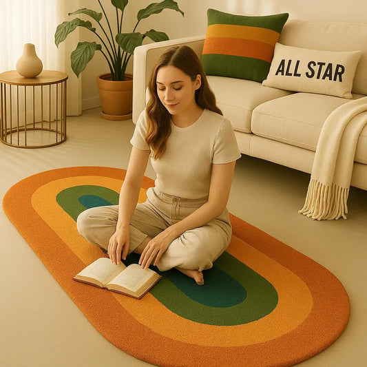 Vintage 70's Oval Rug – Retro Rainbow Gradient