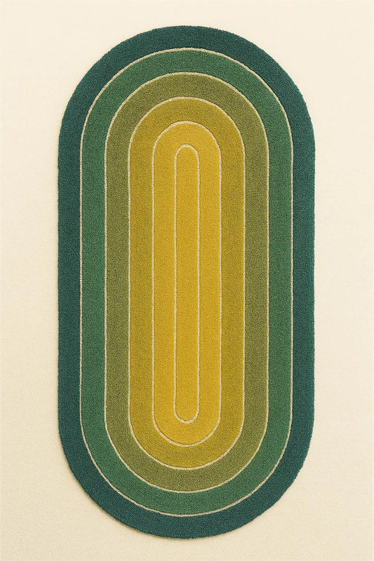 Vintage 70s Oval Rug – Green Gradient Retro Mood